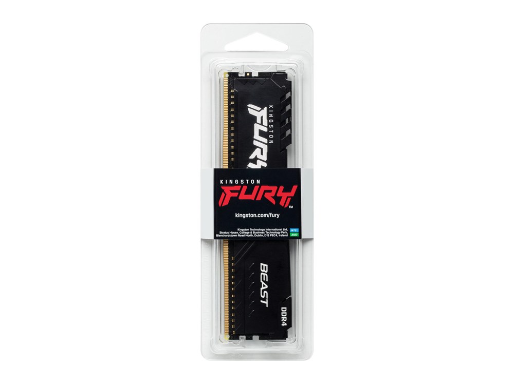 The Kingston FURY™ Beast DDR4 provides a powerful performance boost for gaming, video editing and rendering with speeds of up to 3733MHz1. This cost-effective upgrade is available in 2666MHz–3733MHz speeds, CL15–19 latencies, single-module capacities of 4GB–32GB and kit capacities of 8GB–128GB. It features Plug N Play automatic overclocking at 2666MHz1 and is both Intel XMP-ready and ready for AMD Ryzen™.
